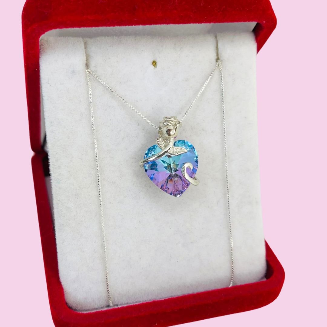Conjunto Piedra Corazon con rosa engarzada Vitro Light Plata 925
