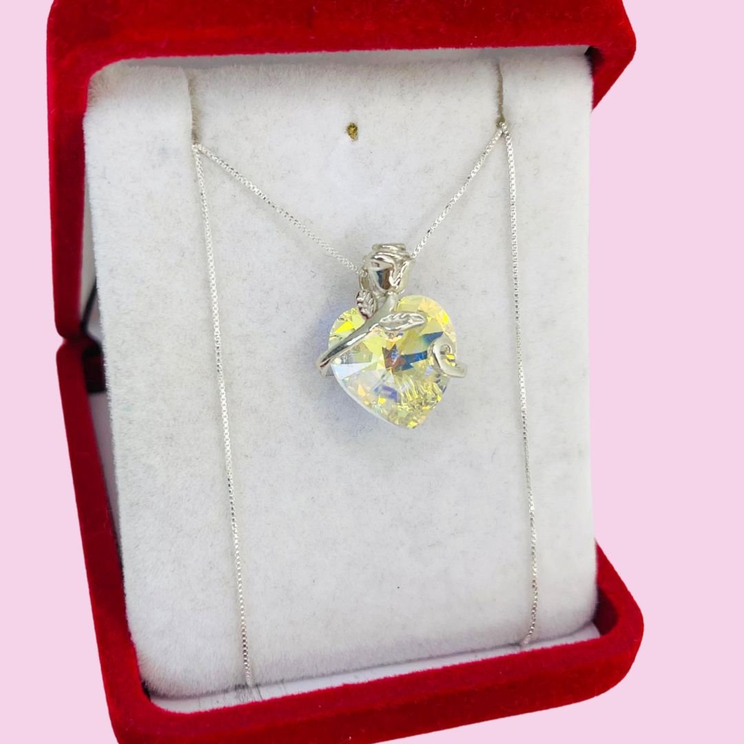 Conjunto Piedra Corazon con rosa engarzada Aurora Boreal Plata 925