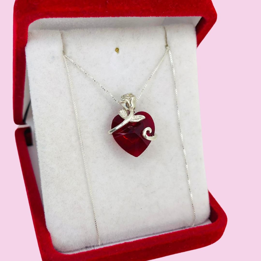 Conjunto Piedra Corazon con rosa engarzada Light Siam Plata 925