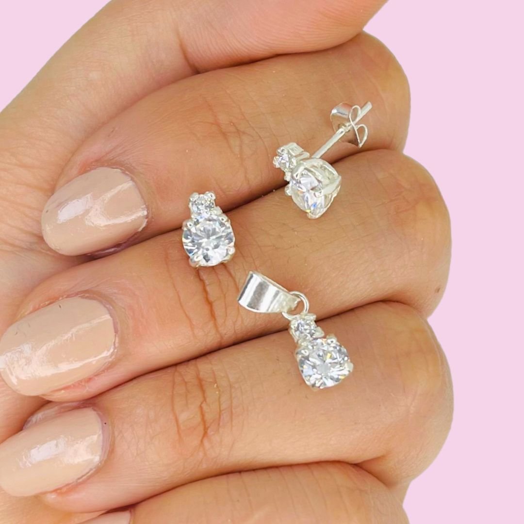 Aros y dije Cubic Brillante Blanco Plata 925