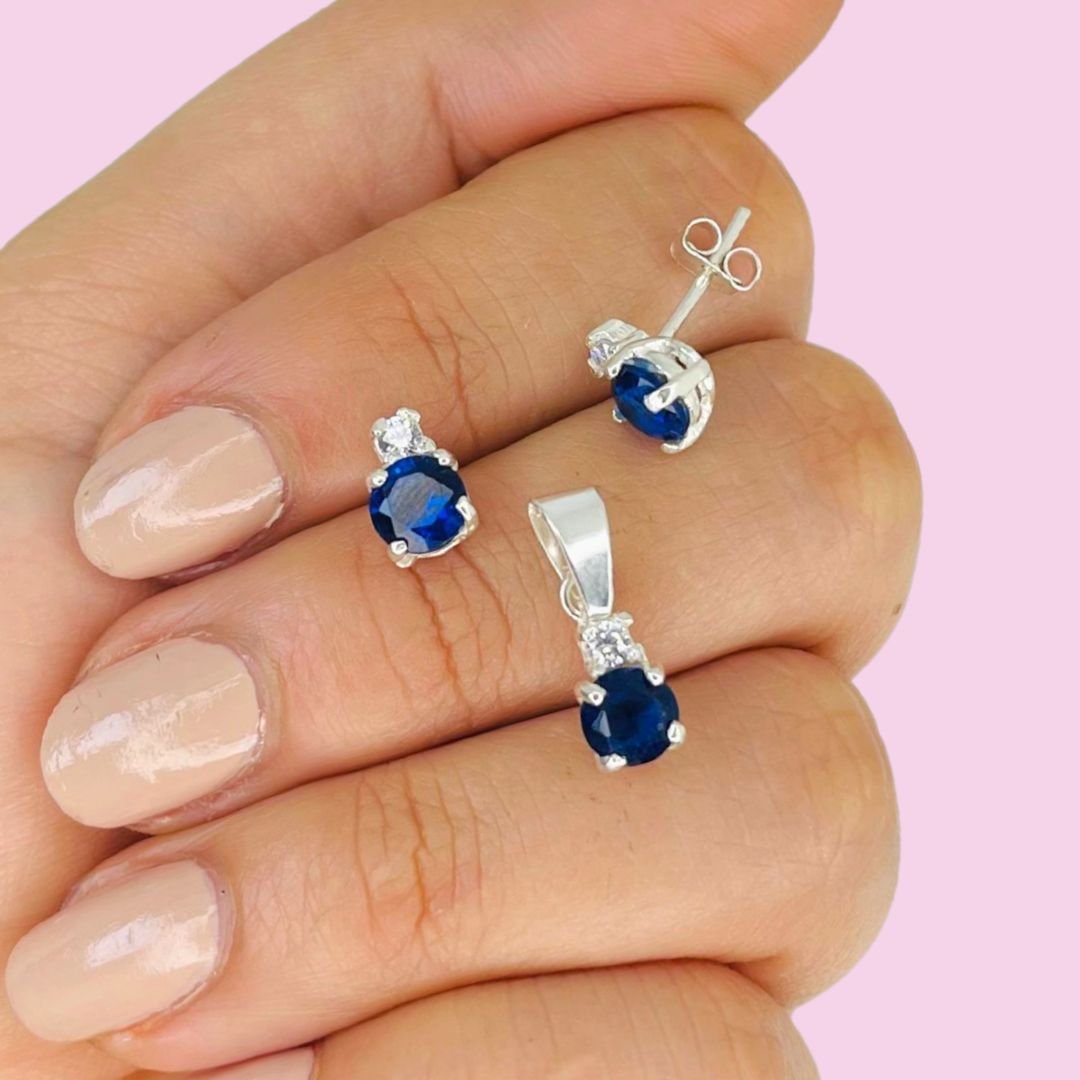 Aros y dije Cubic Brillante Blanco y Azul Plata 925