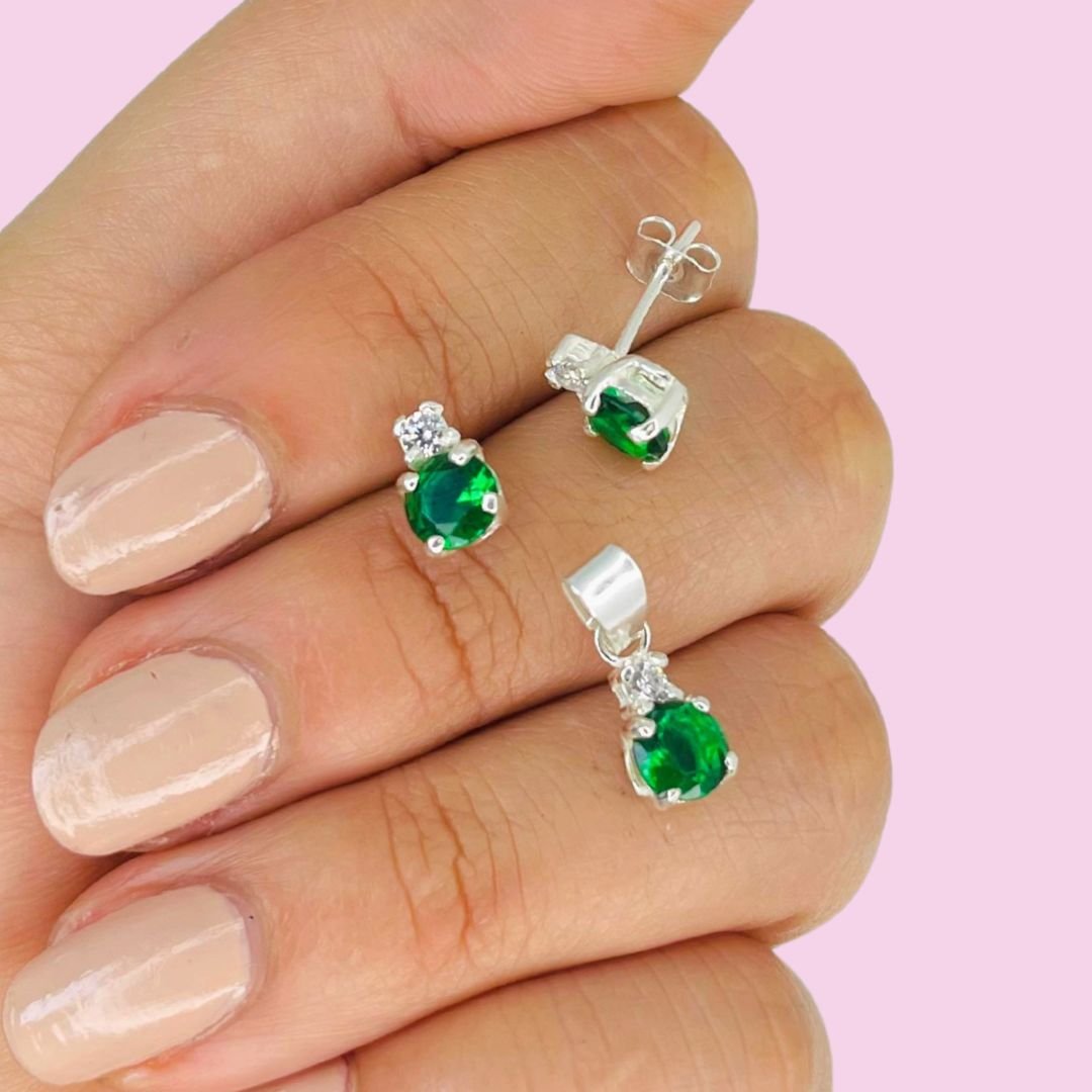 Aros y dije Cubic Brillante Blanco y Verde Plata 925