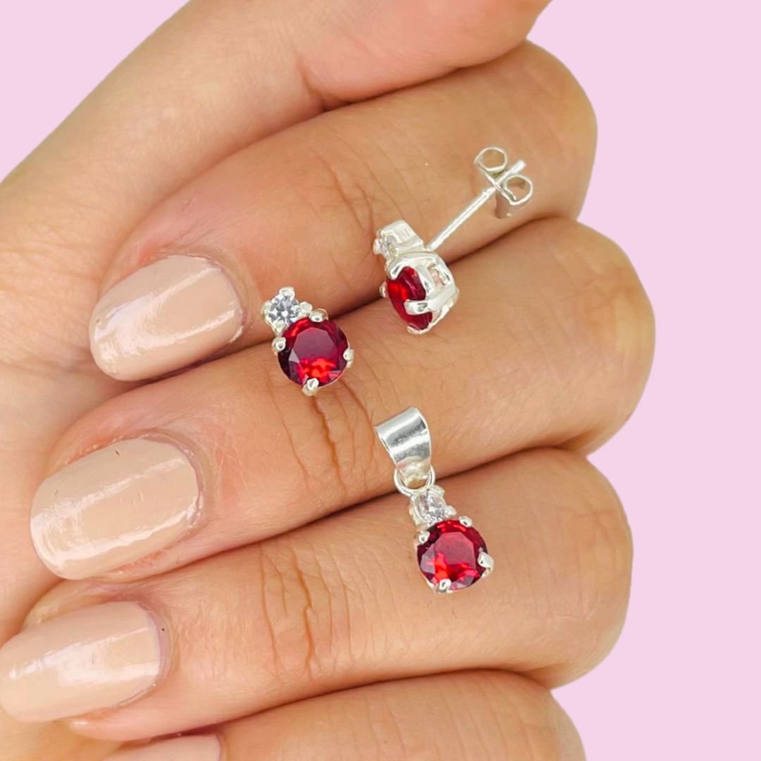 Aros y dije Cubic Brillante Blanco y Rojo Plata 925