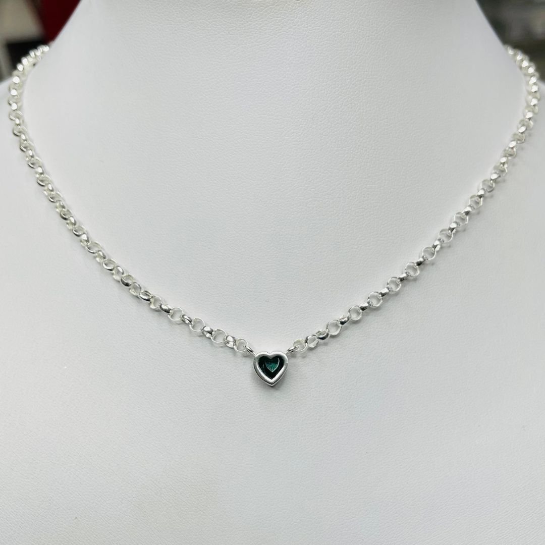 Cadena Rolo con Susanita Corazon Esmeralda de Plata 925