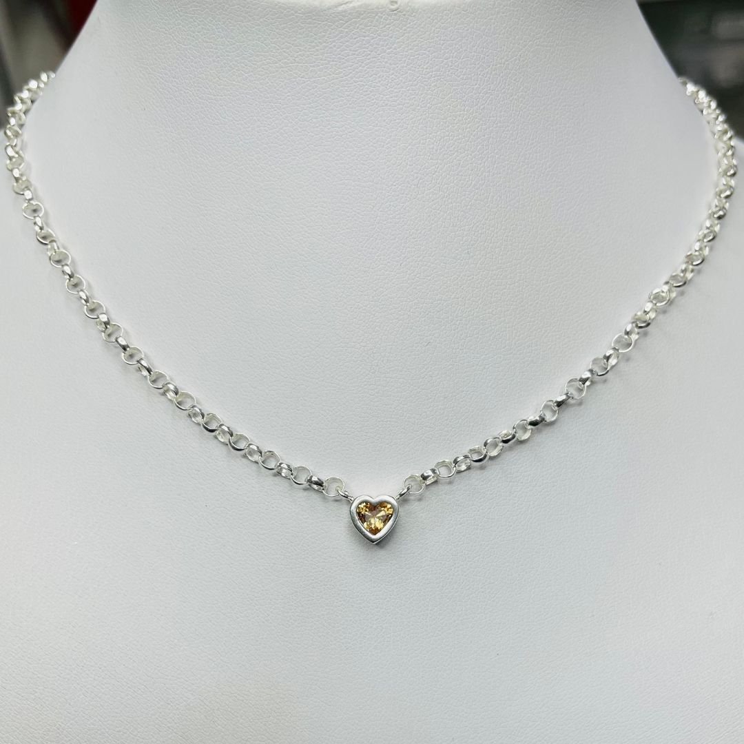 Cadena Rolo con Susanita Corazon Ambar de Plata 925