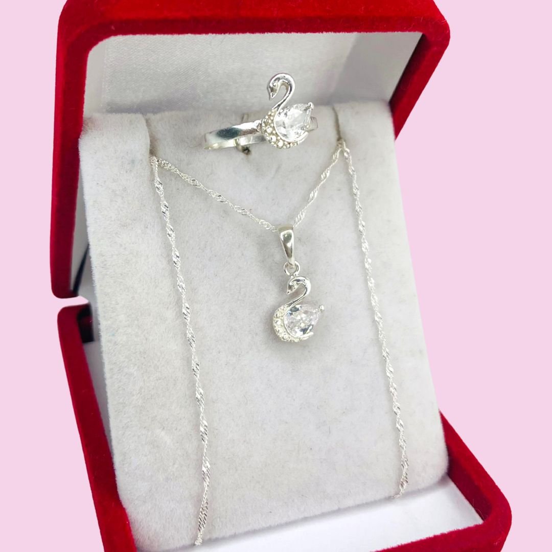 Artículo: KIT 372-1Conjunto Cadena con dije y aros Cisne Blanco Plata 925