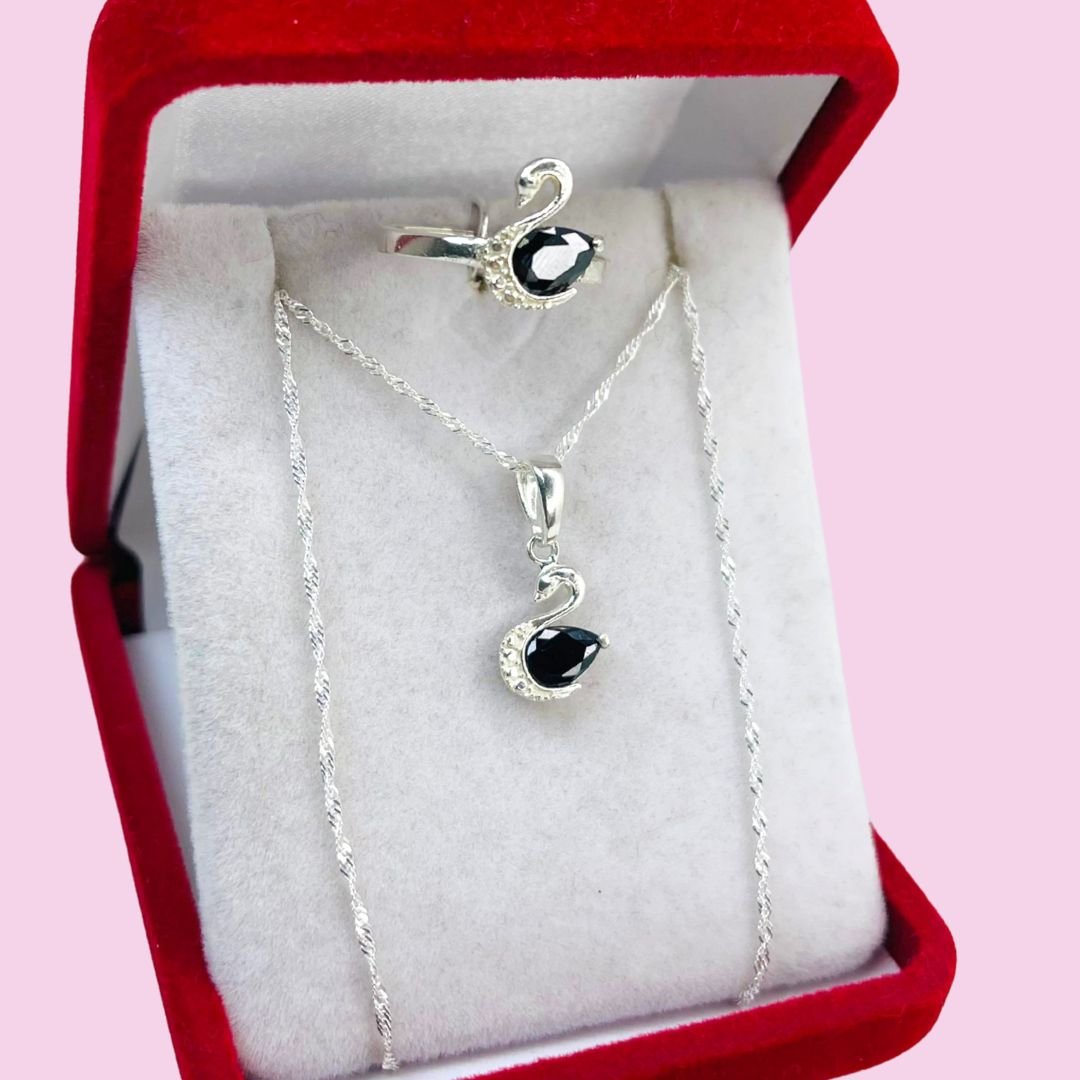 Conjunto Cadena con dije y anillo Cisne Negro Plata 925