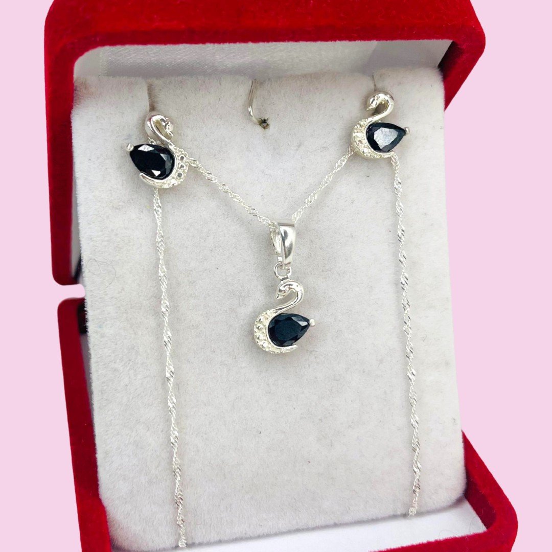 Artículo: KIT 373-2Conjunto Cadena con dije y aros Cisne Negro Plata 925