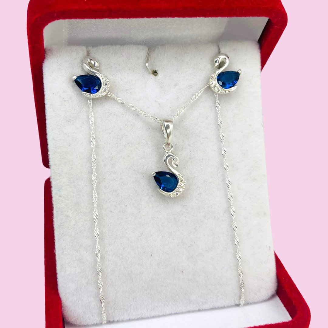 Conjunto Cadena con dije y aros Cisne Azul Plata 925
