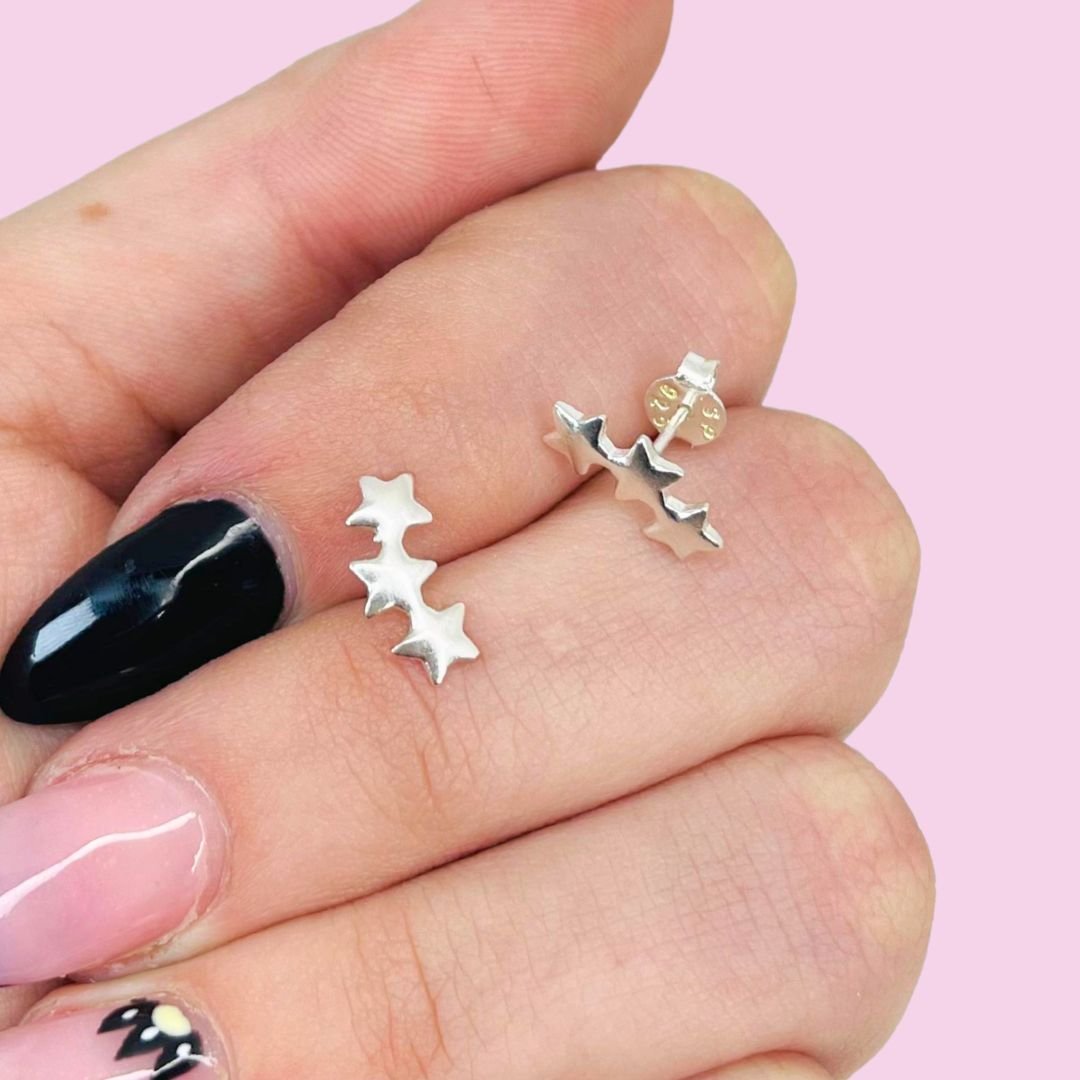 Aros Trepador tres Estrellas Lisas de Plata 925