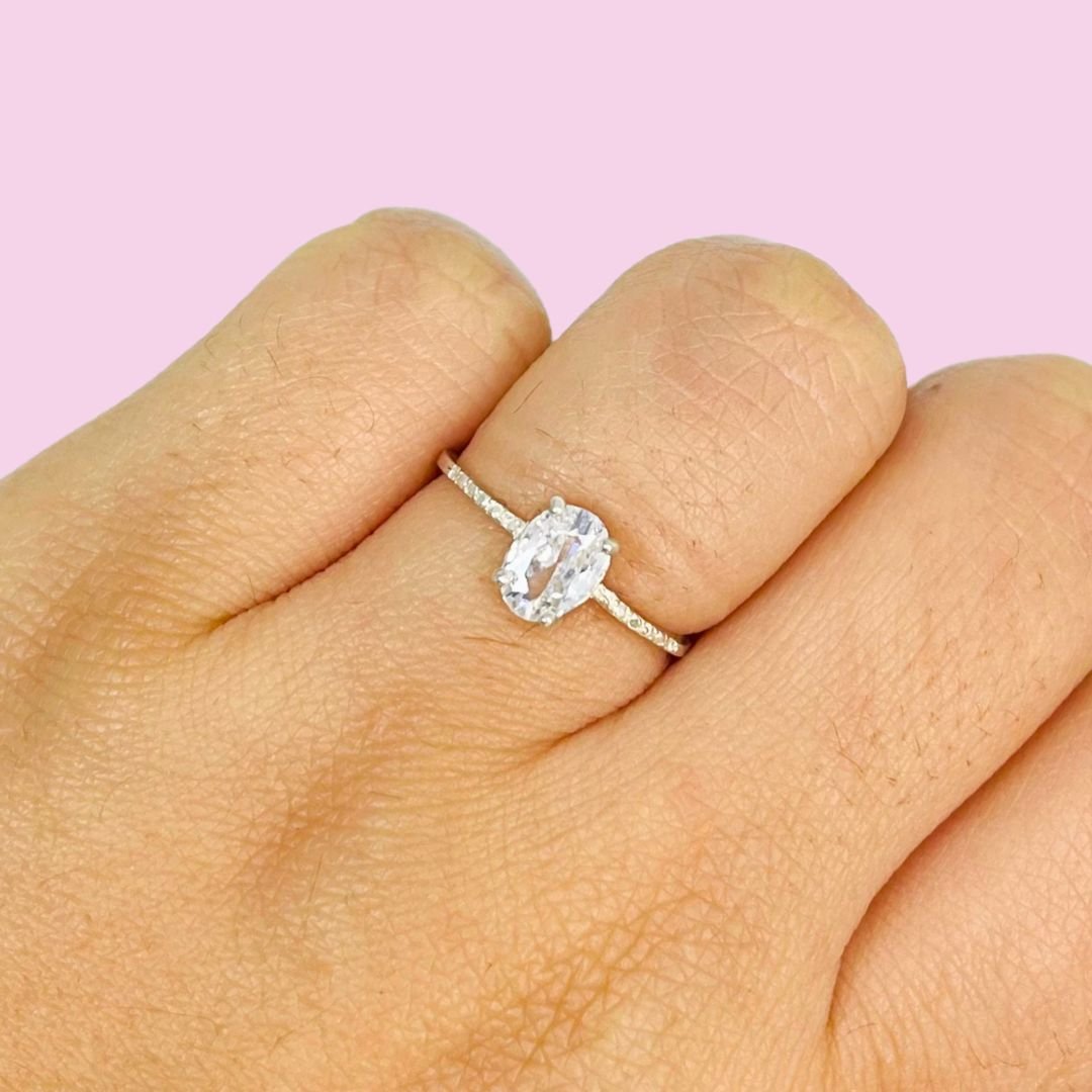 Anillo Solitario Piedra ovalada Blanco Plata 925