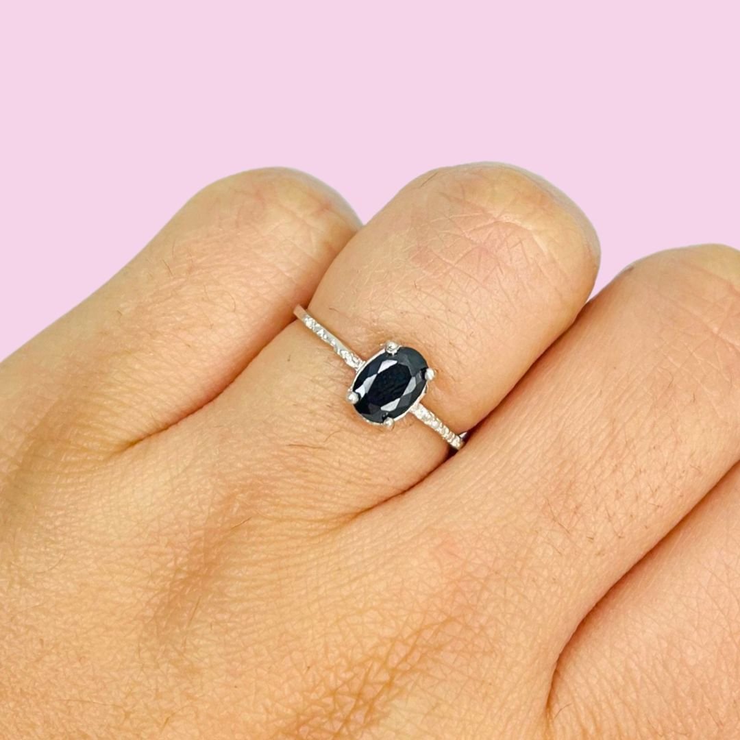 Anillo Solitario Piedra ovalada Negro Plata 925