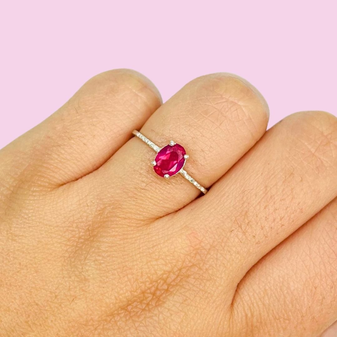 Anillo Solitario Piedra ovalada Fucsia Plata 925