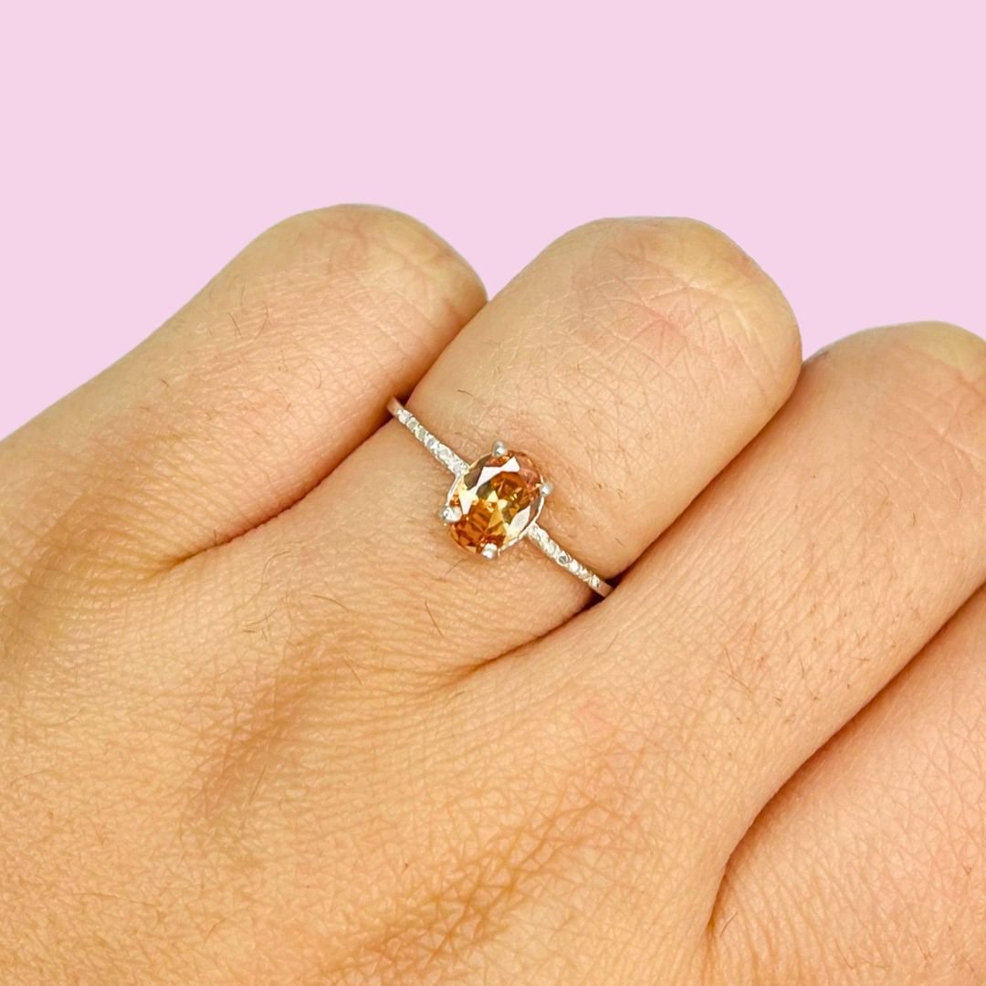 Anillo Solitario Piedra ovalada Ambar Plata 925
