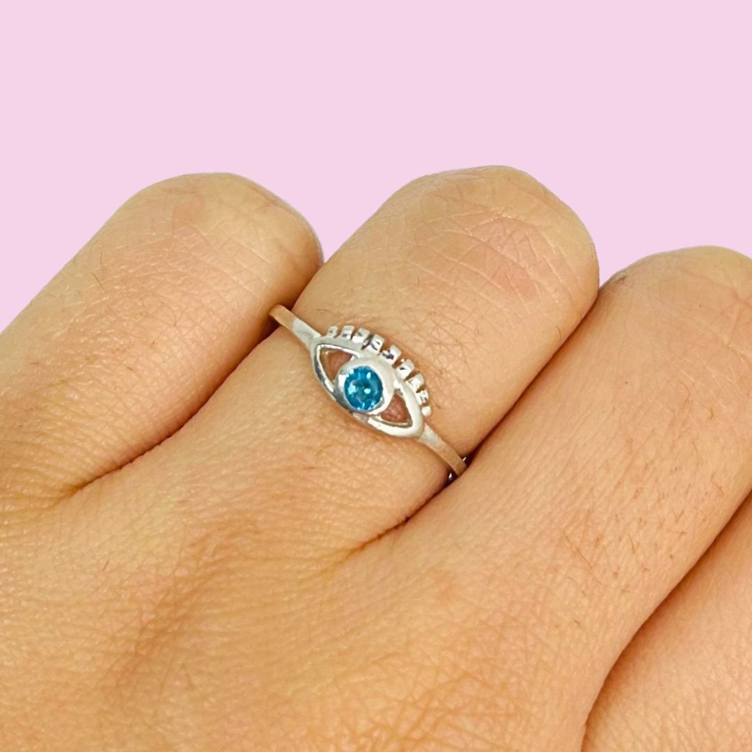Anillo Ojito con cubic Aguamarina Plata 925