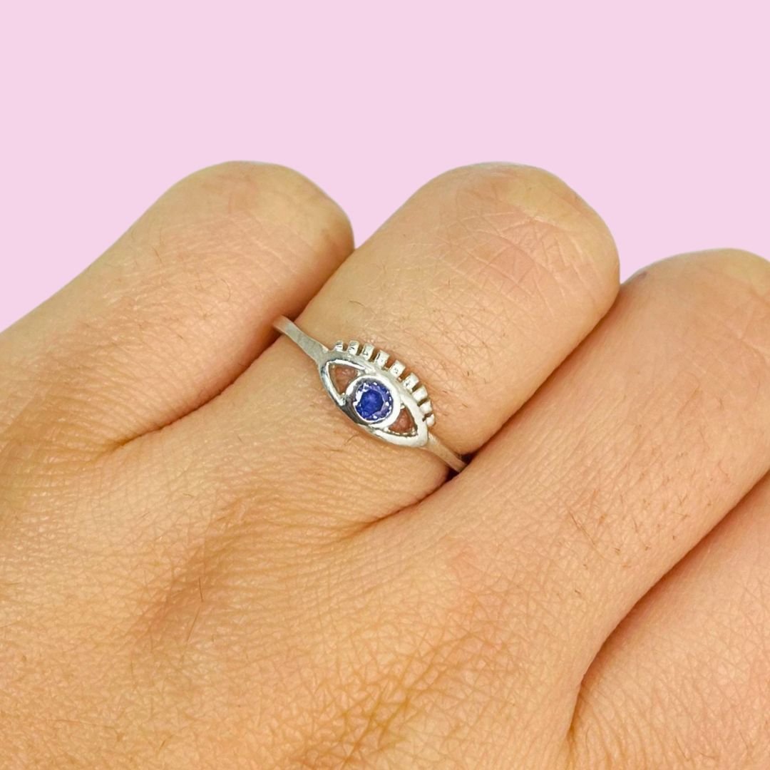 Anillo Ojito con cubic Violeta Plata 925
