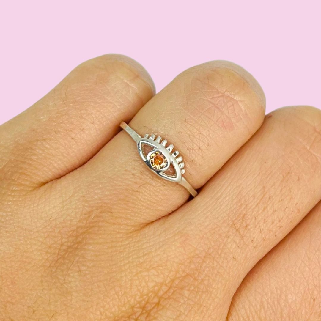 Artículo: AP 701-7Anillo Ojito con cubic Ambar Plata 925