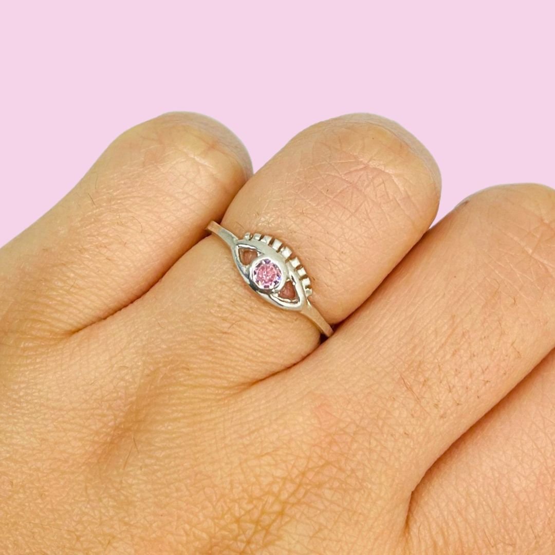 Anillo Ojito con cubic Rosa Plata 925
