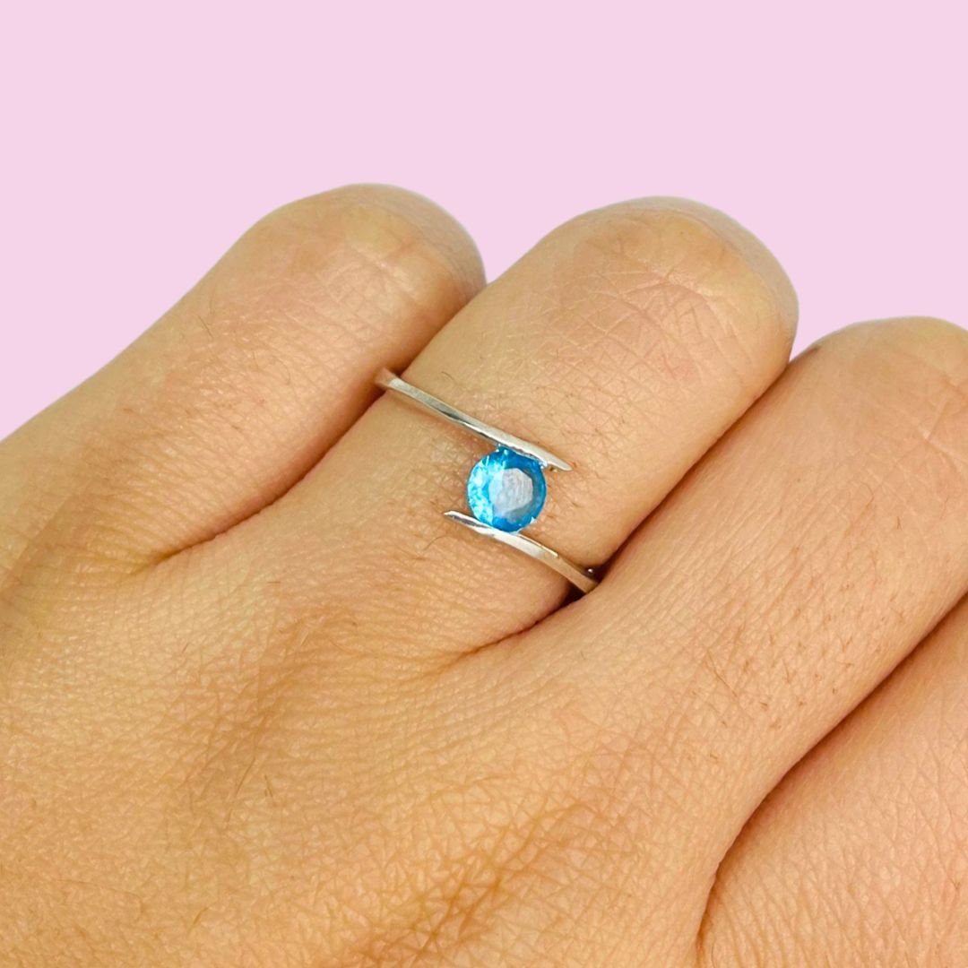 Anillo Encuentro con cubic Aguamarina Plata 925