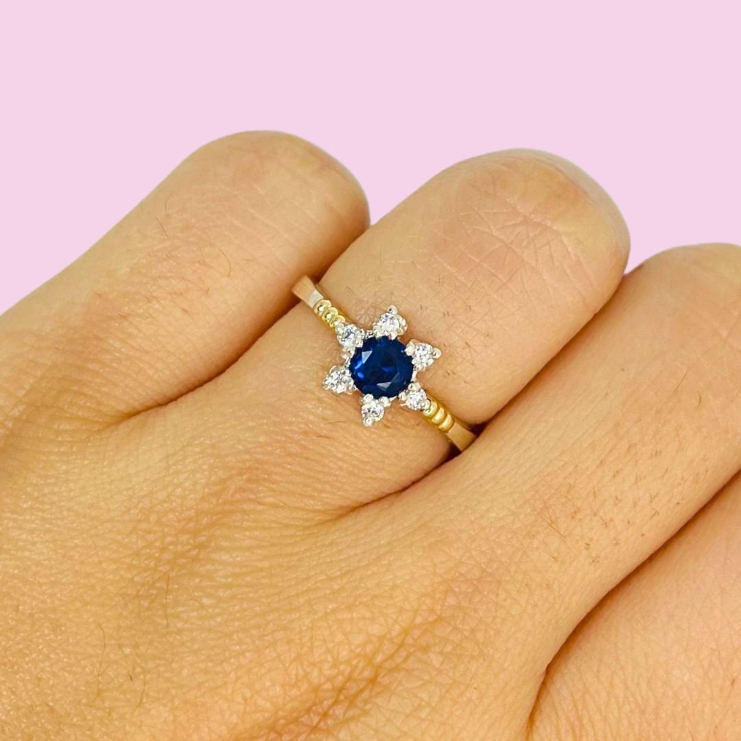 Anillo Roseta flor Azul y blanco de Plata y Oro