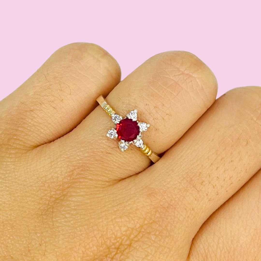 Artículo: AP 376-6Anillo Roseta flor Rojo y blanco de Plata y Oro