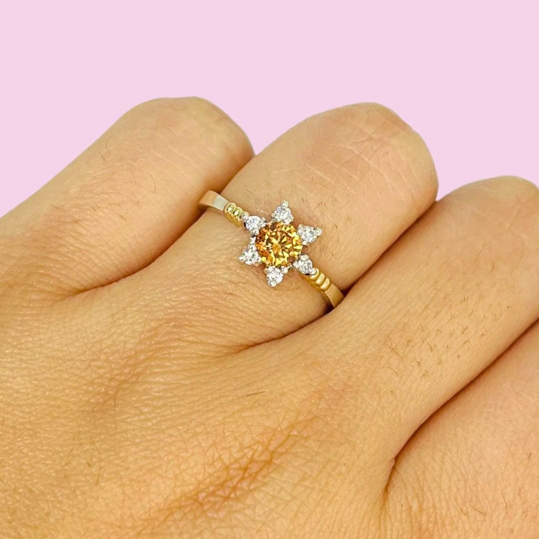Anillo Roseta flor Ambar y blanco de Plata y Oro
