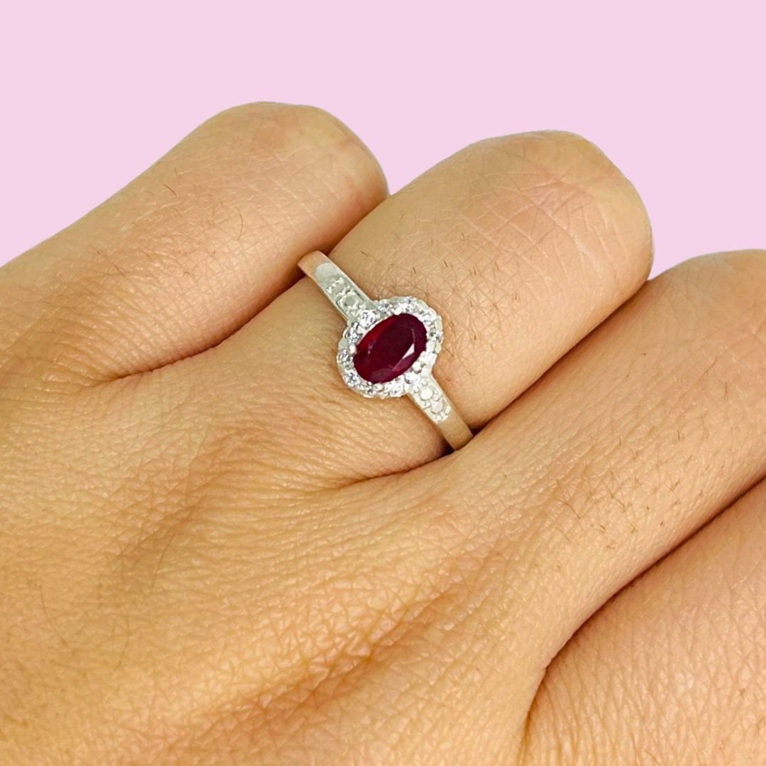 Anillo Halo de piedra Blanco y Rojo Plata 925