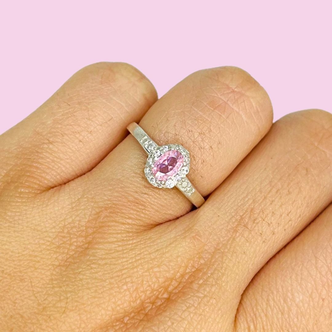 Anillo Halo de piedra Blanco y Rosa Plata 925
