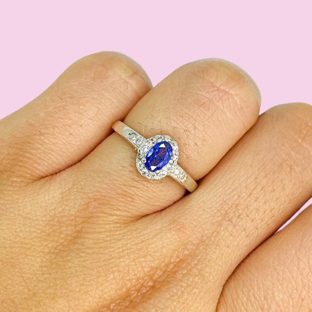 Anillo Halo de piedra Blanco y Lila Plata 925