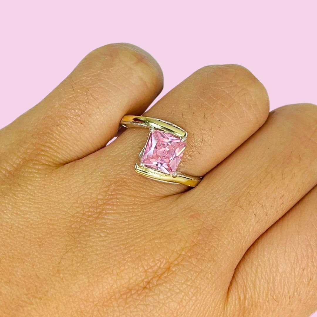 Anillo encuentro con piedra cuadrada Rosa Plata 925 y Oro 18k