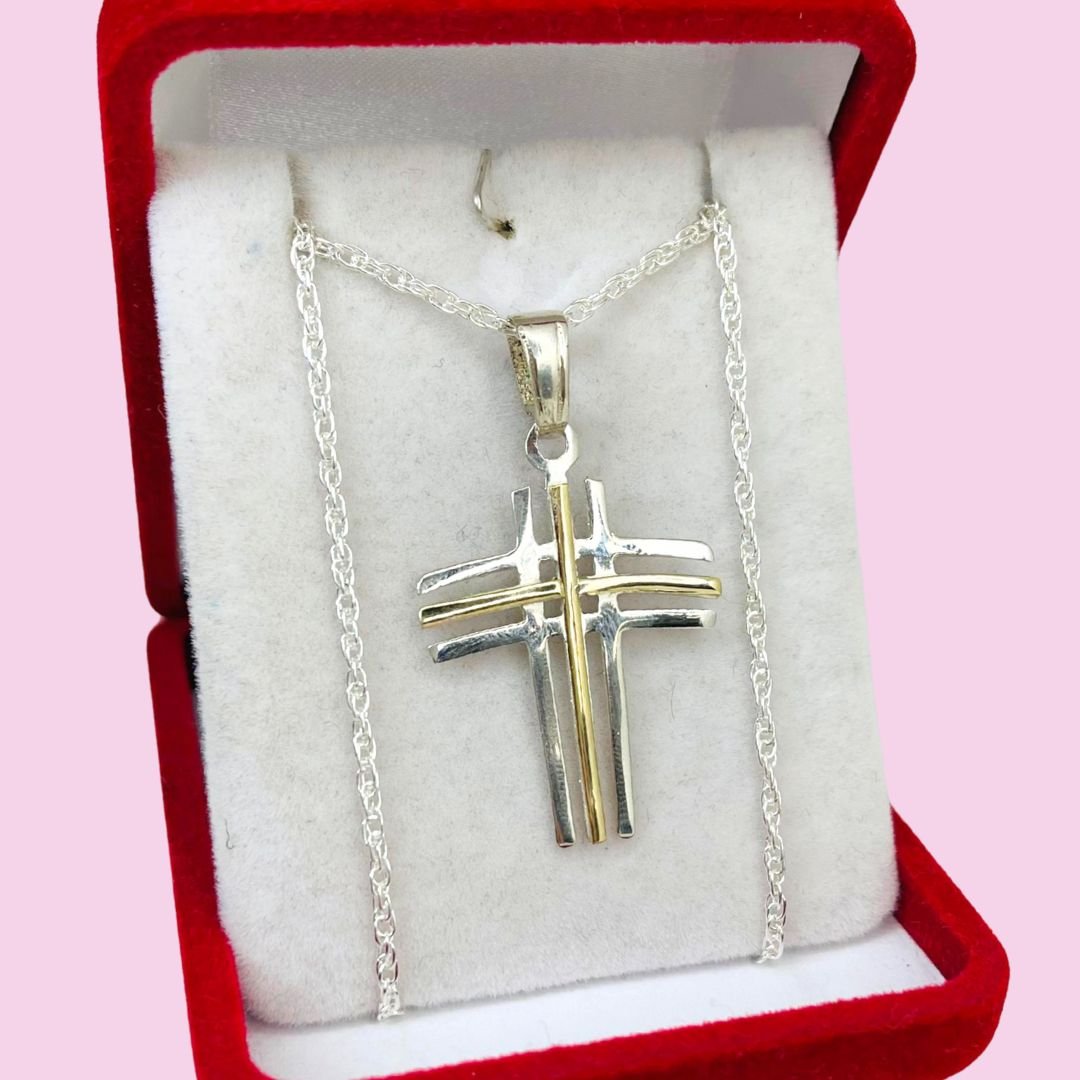 Conjunto con Dije cruz en líneas 42mm de Plata y Oro