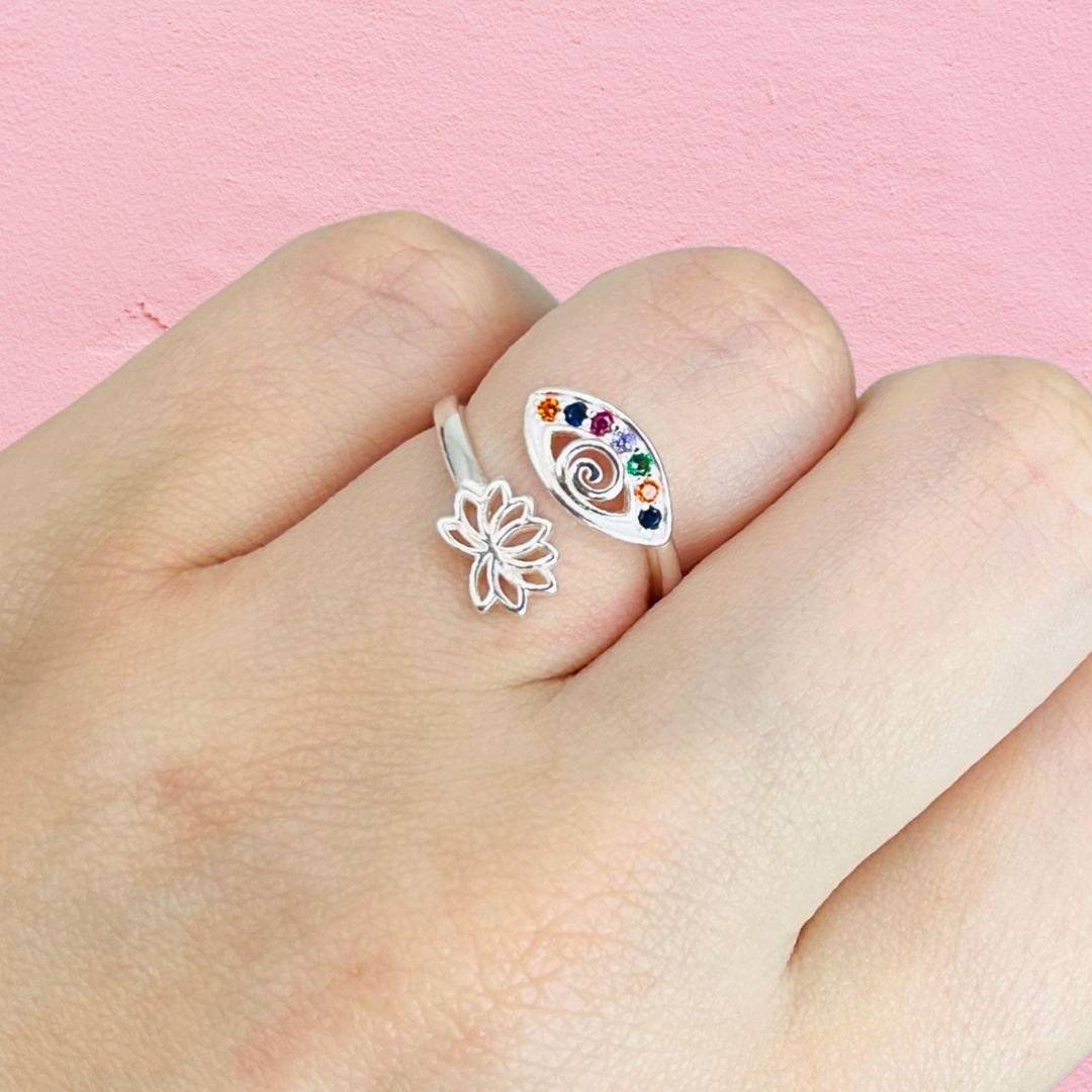 Anillo Encuentro Ojo con Flor de loto Multicolor Plata Italiana