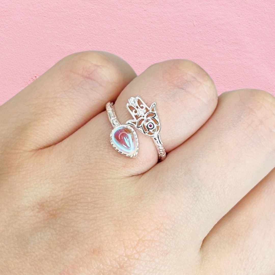 Anillo Encuentro Mano Fátima con Piedra lunar Plata Italiana