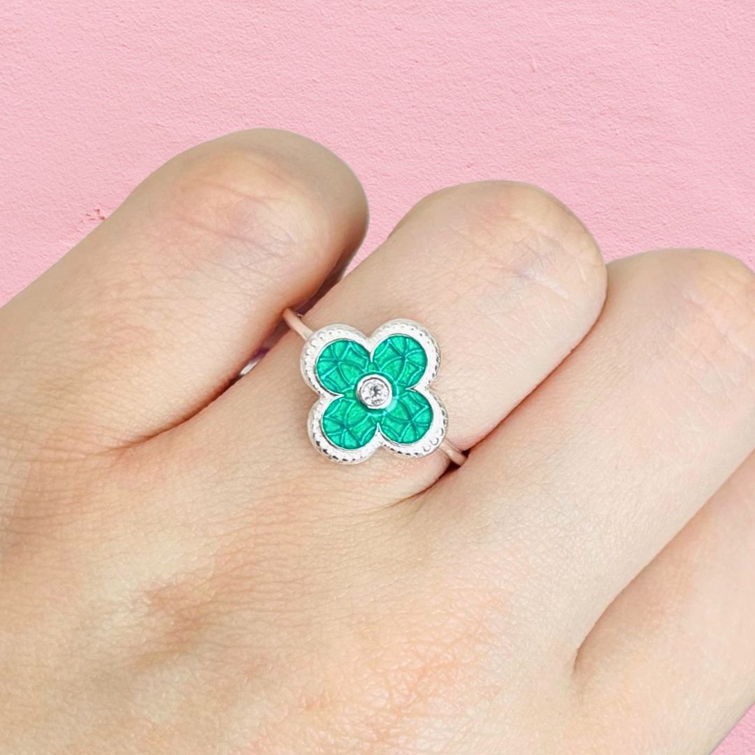 Anillo Van Cleef Esmaltado Verde con cubic blanco Plata Italiana