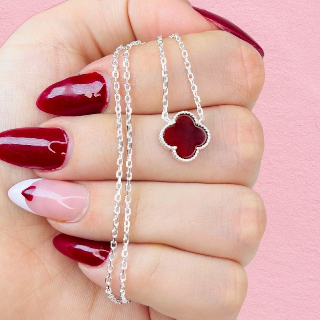 Artículo: KIT 378-1Conjunto Cadena y dije Van Cleef Rojo de Plata Italiana