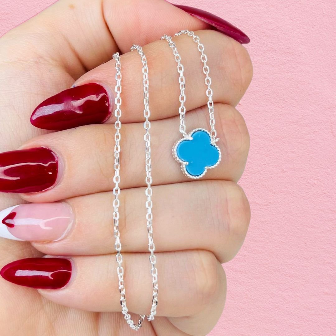 Artículo: KIT 378-2Conjunto Cadena y dije Van Cleef celeste de Plata Italiana