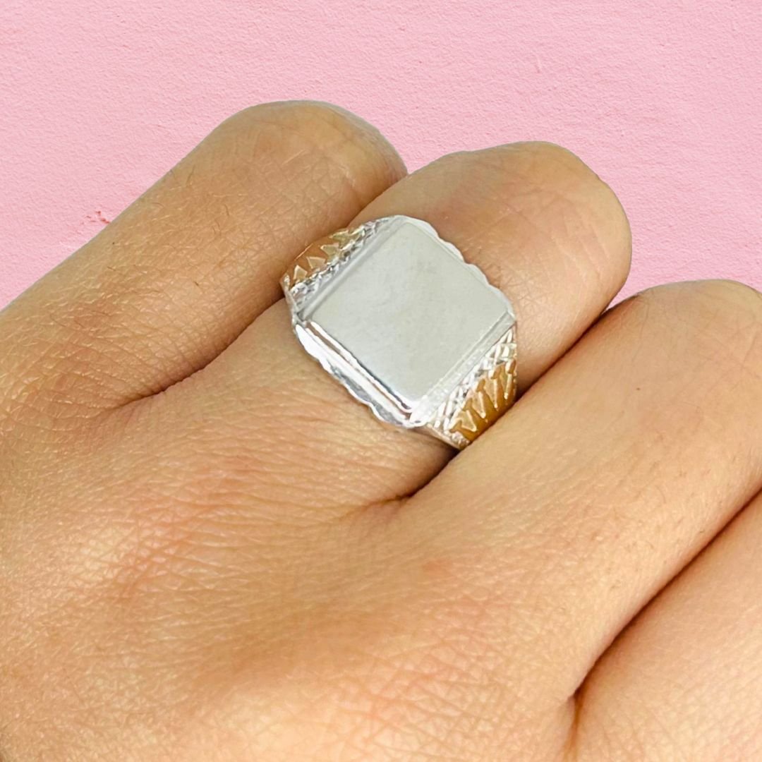 Anillo Sello Cuadrado grande para grabar de Plata y Oro
