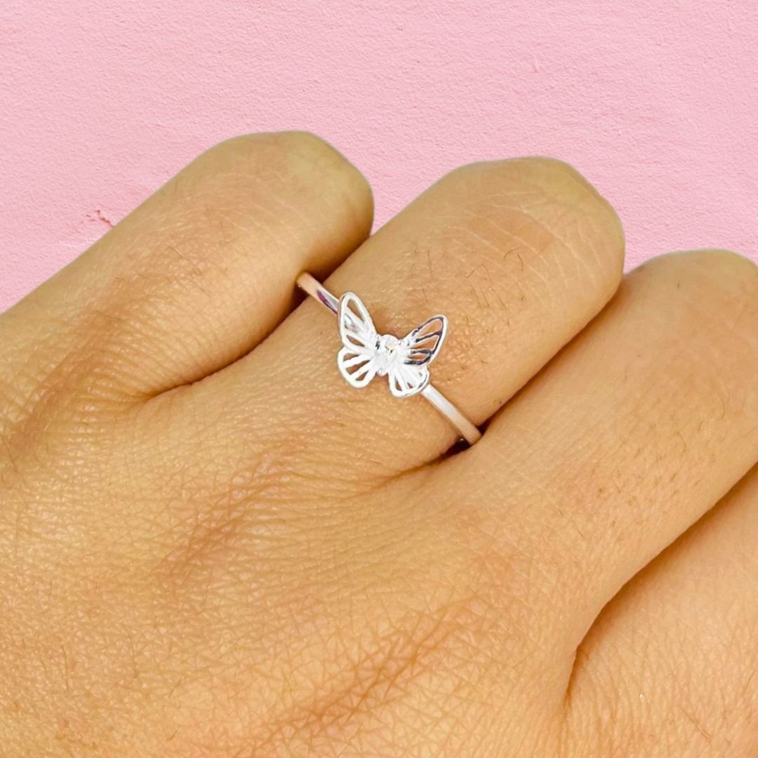 Anillo mariposa con cubic blanco Plata Italiana