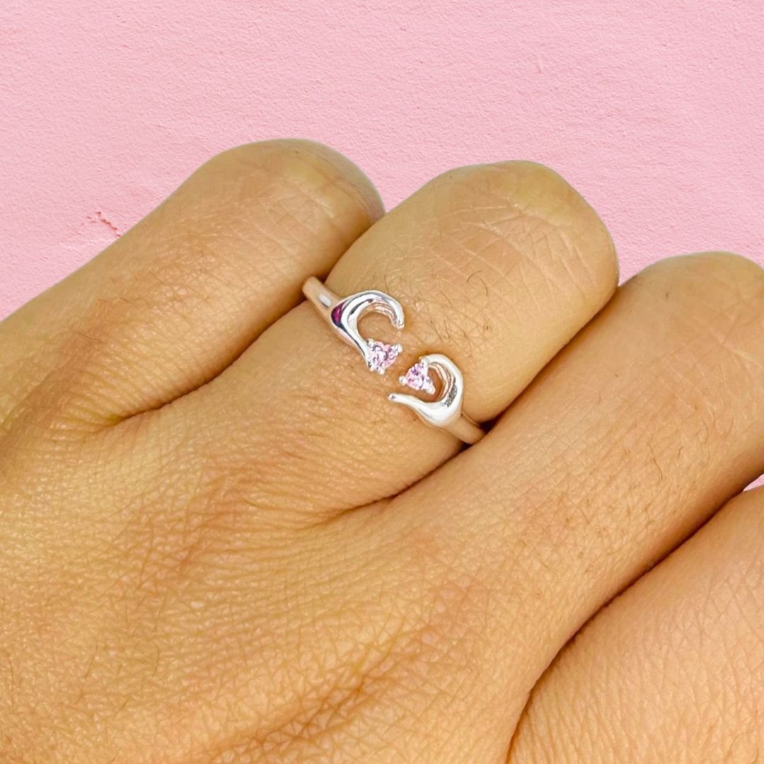 Anillo Emoji manos corazon con cubic Rosa Plata Italiana