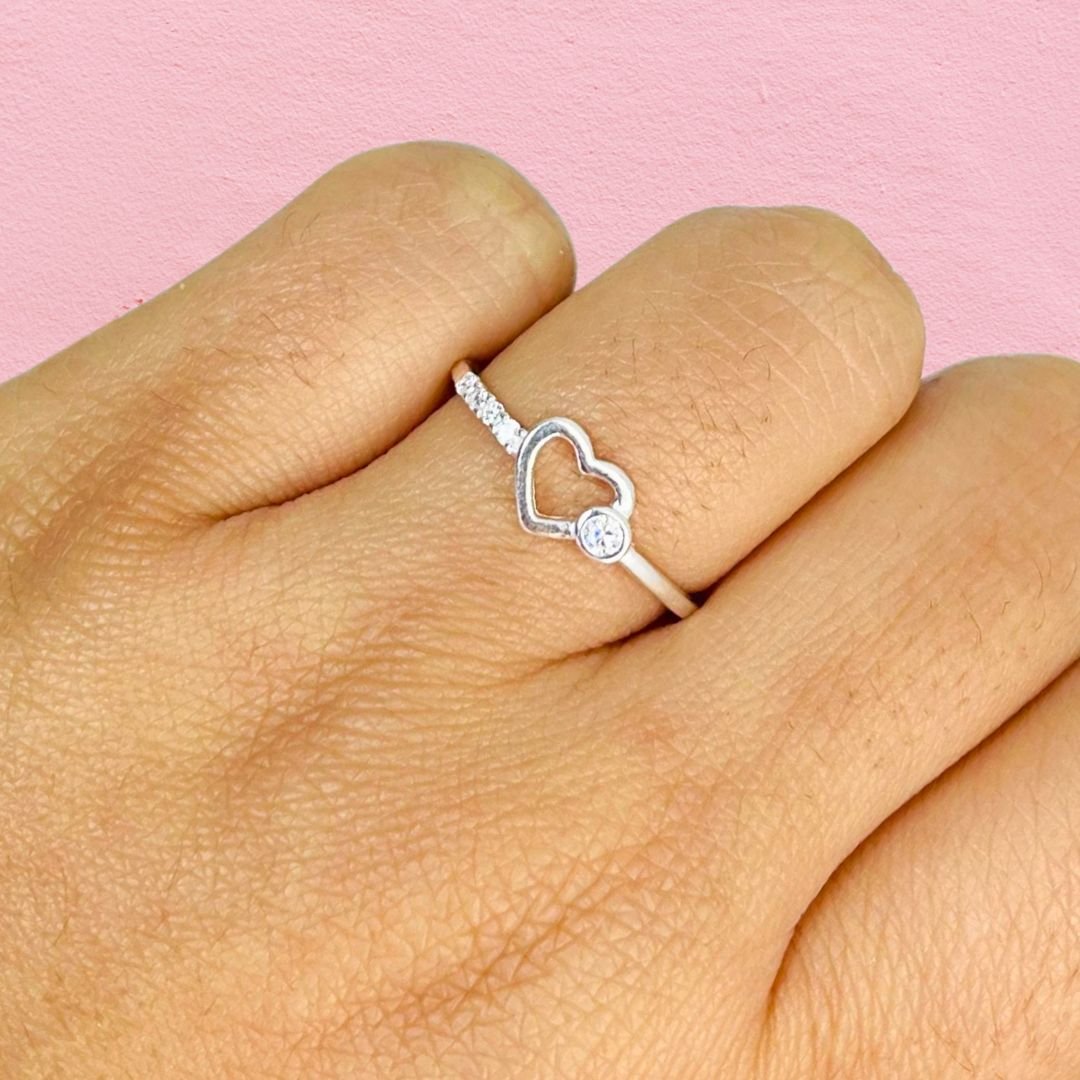 Anillo Corazon con Susanita con cubic Plata Italiana