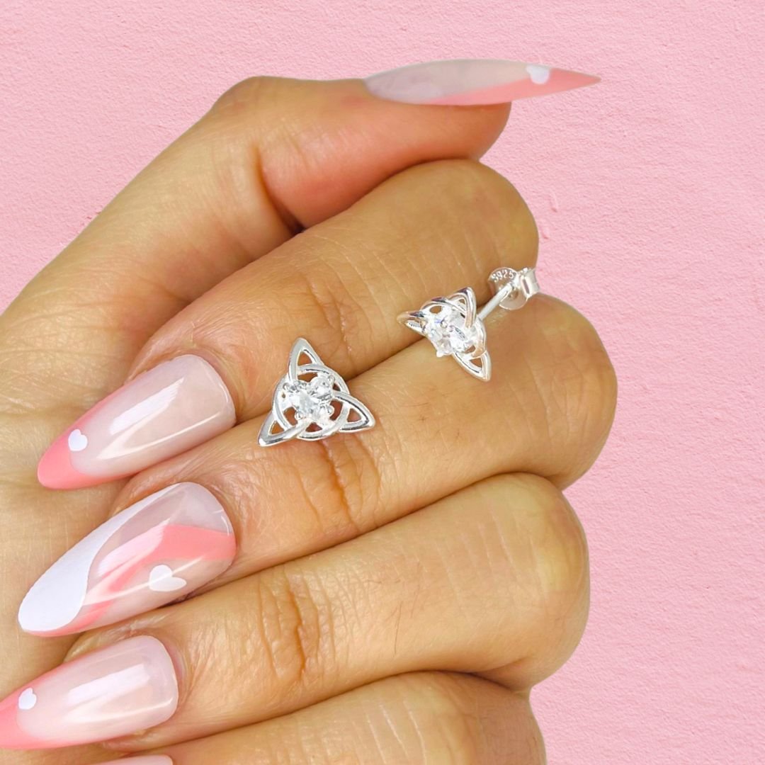 Aros Nudo de bruja con cubic corazon Blanco Plata Italiana