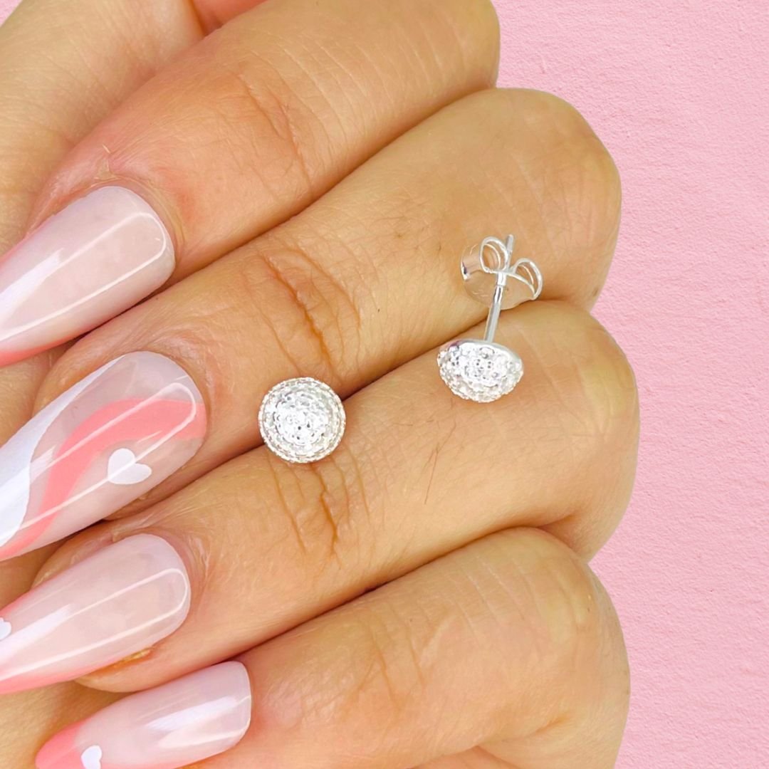 Artículo: AR 660Aros media bolita de fuego Blanco micropave Plata Italiana