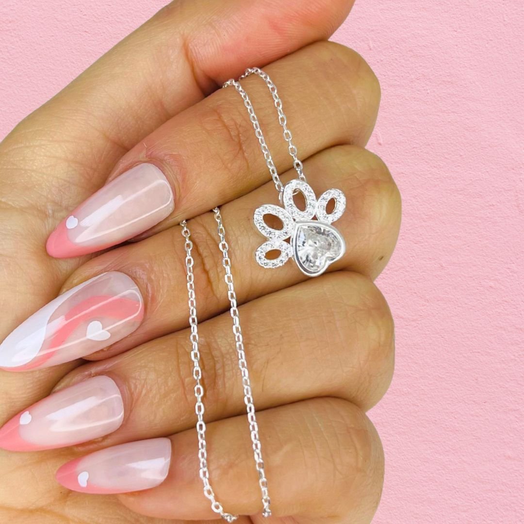 Conjunto Cadena espejado con dije Patita cubic blanco Plata Italiana