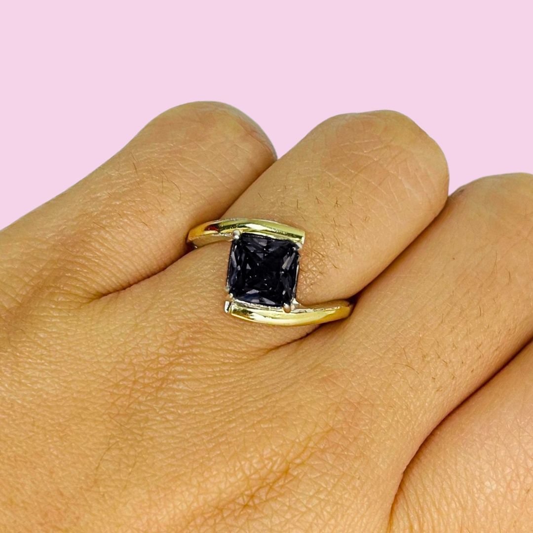 Anillo encuentro con piedra cuadrada Negro Plata 925 y Oro 18k