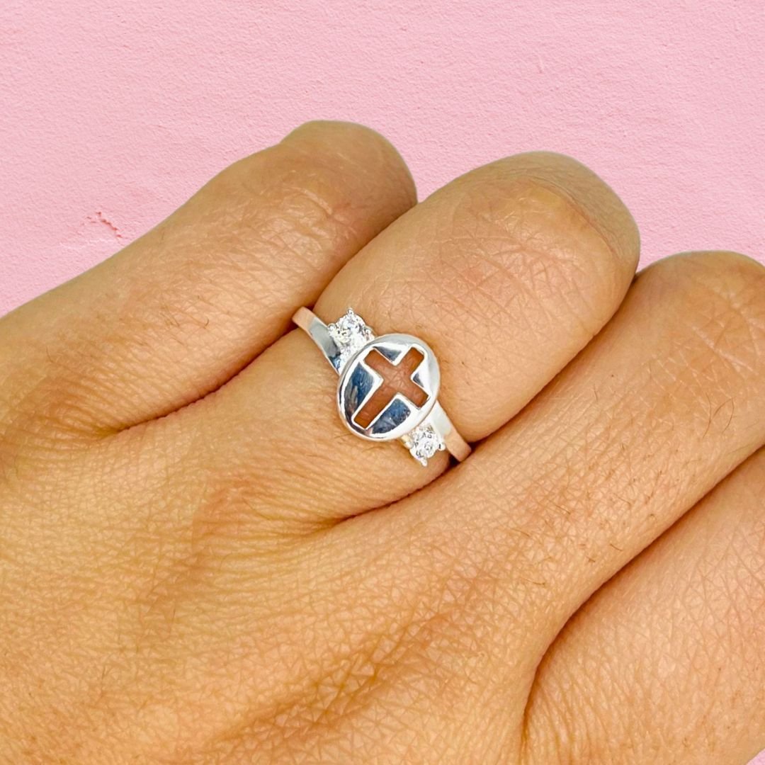 Artículo: AP 721Anillo Cruz con cubic Plata Italiana