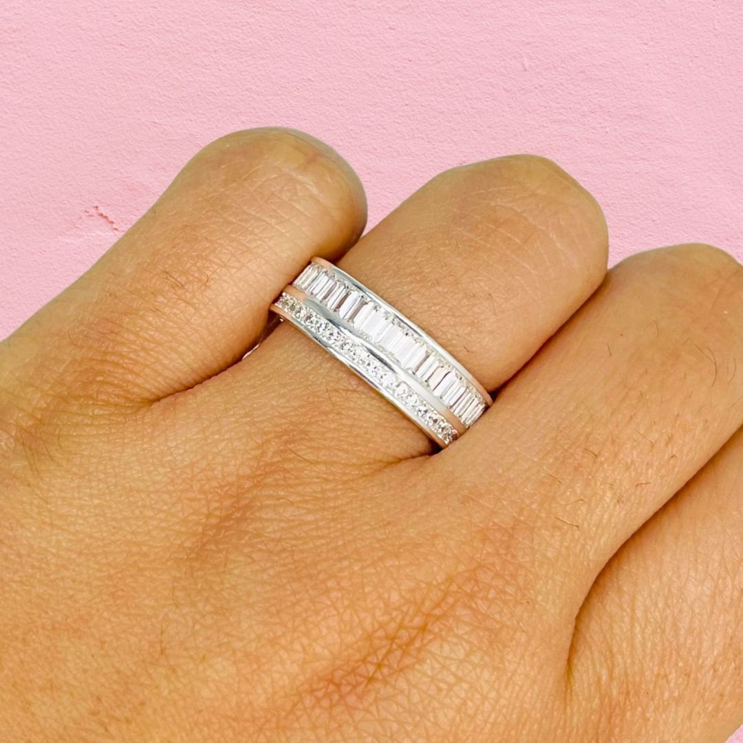 Artículo: AP 728Anillo Medio sin fin con baguette Blanco Plata Italiana