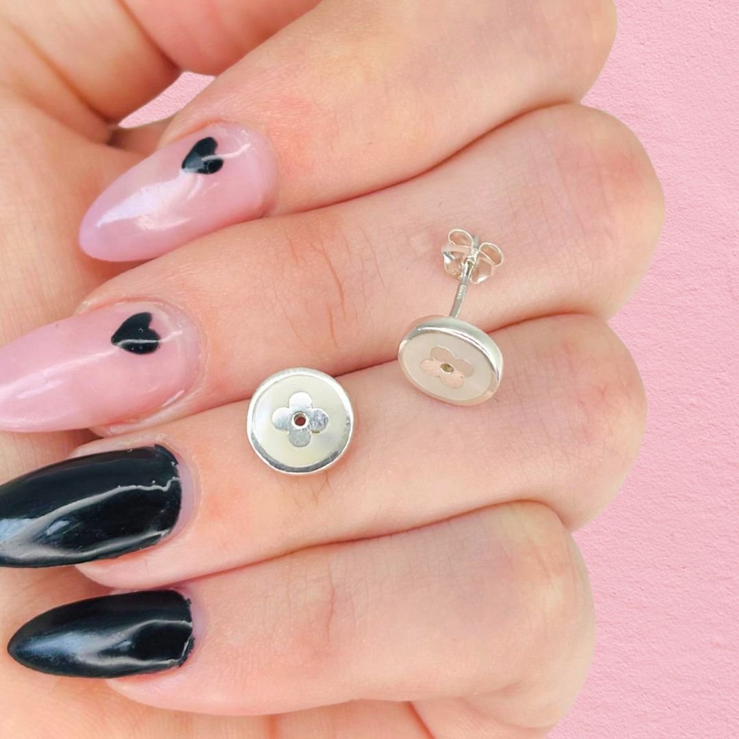 Artículo: AR 661-3Aros louis vuitton Nacar Blanca Plata Italiana