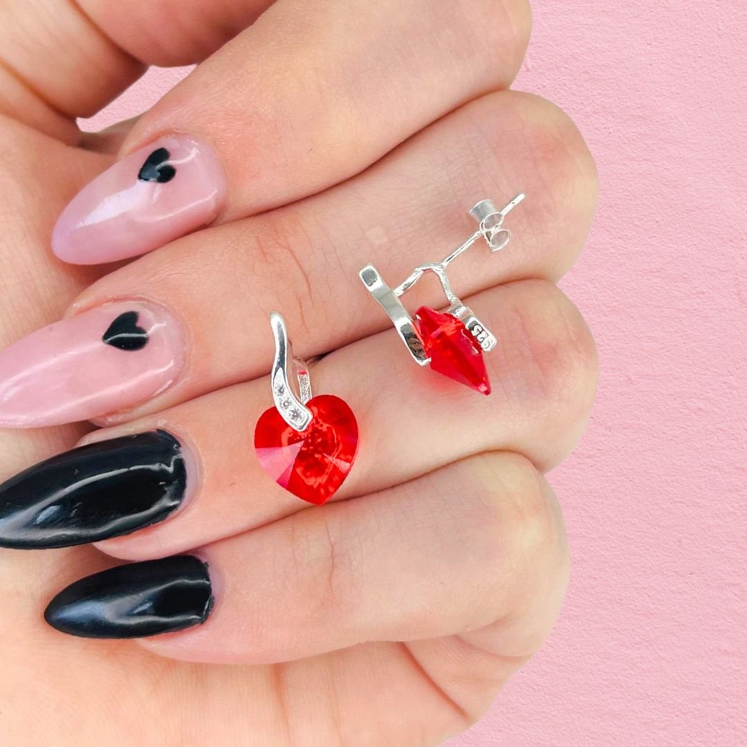 Artículo: AR 663Aros Swarowski Corazon Light Siam con micropave Plata Italiana