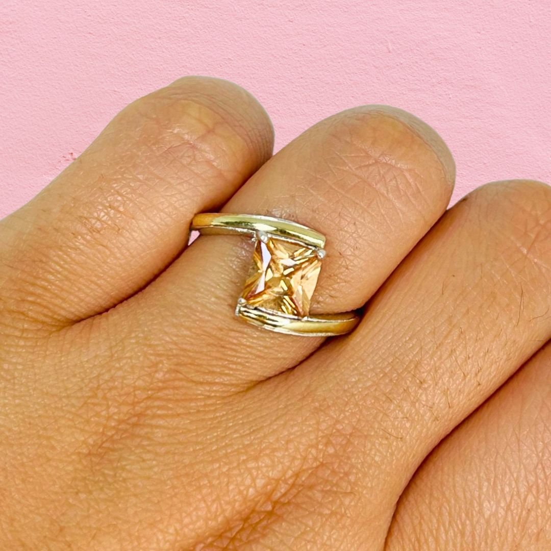 Anillo encuentro con piedra cuadrada Ambar Plata 925 y Oro 18k