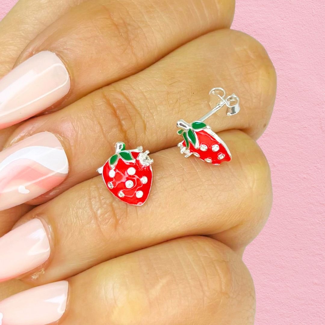 Aros Frutilla rojo Esmaltado Plata Italiana
